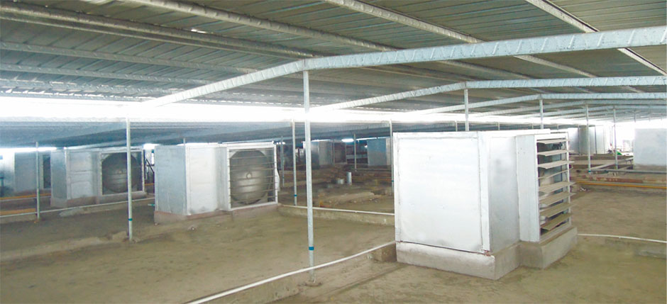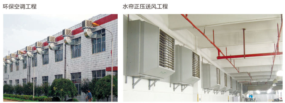 水帘降温工程中运用的负压风机一般采用百叶风机、具有噪音低、风量大、耗能小、运行平稳、寿命长、效率高,并拥有百叶自动开启、关闭系统。达到防尘、防水、美观等效果,是现代化厂房通风最佳选择。