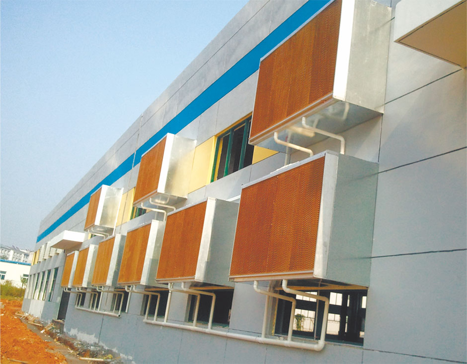 系统工作原理:其节能原理和环保空调一样都是利用了水蒸发需要吸收热量这一自然现象。